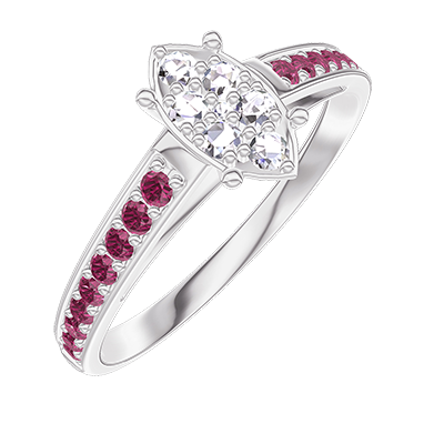 « L'ATELIER » Nº210711Ring Witgoud 18 karaat - Cluster van natuurlijke diamantent Markies gelijkwaardig 0.7 - Setting Robijn