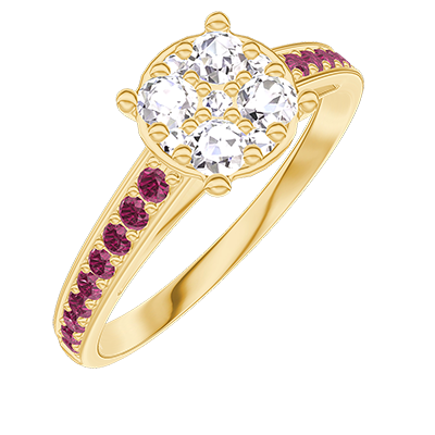 « L'ATELIER » Nº210810Ring Geelgoud 9 karaat - Cluster van natuurlijke diamantent rond gelijkwaardig 1 - Setting Robijn 4.9