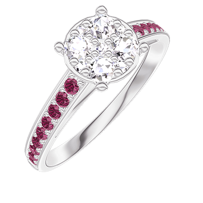 « L'ATELIER » NR. 210811Ring Witgoud 18 karaat - Cluster van natuurlijke diamantent rond gelijkwaardig 1 - Setting Robijn 4.9
