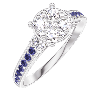 « L'ATELIER » NR. 210836Ring Witgoud 9 karaat - Cluster van natuurlijke diamantent rond gelijkwaardig 1 - Aanleunende edelstenen Diamant - Setting Blauwe saffier 4.9