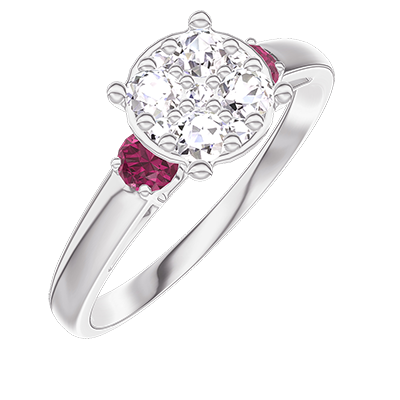 « L'ATELIER » NR. 210844Ring Witgoud 9 karaat - Cluster van natuurlijke diamantent rond gelijkwaardig 1 - Aanleunende edelstenen Robijn 4.9