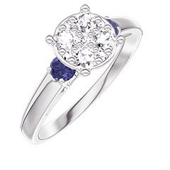 Ring Witgoud 18 karaat - Cluster van natuurlijke diamantent rond gelijkwaardig 1 - Aanleunende edelstenen Blauwe saffier