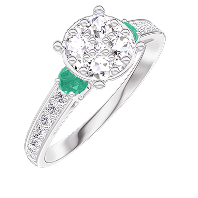 « L'ATELIER » NR. 210887Ring Witgoud 18 karaat - Cluster van natuurlijke diamantent rond gelijkwaardig 1 - Aanleunende edelstenen Smaragd - Setting Diamant 4.9