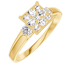 « L'ATELIER » NR. 210922Ring Geelgoud 9 karaat - Cluster van natuurlijke diamantent Prinses gelijkwaardig 1 - Aanleunende edelstenen Diamant