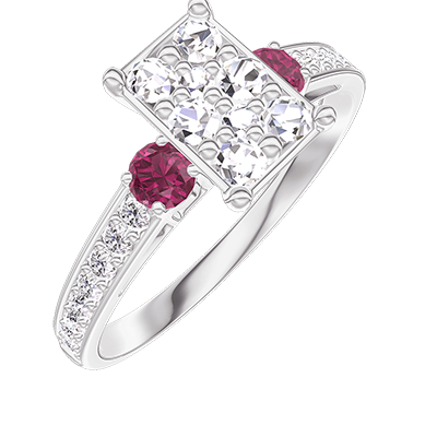 « L'ATELIER » Nº211048Ring Witgoud 9 karaat - Cluster van natuurlijke diamantent Rechthoekig gelijkwaardig 1 - Aanleunende edelstenen Robijn - Setting Diamant 4.6