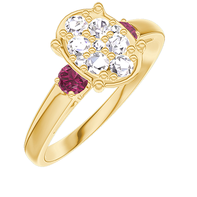 « L'ATELIER » NR. 211141Ring Geelgoud 18 karaat - Cluster van natuurlijke diamantent Ovaal gelijkwaardig 1 - Aanleunende edelstenen Robijn 4.8