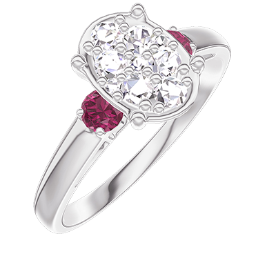 « L'ATELIER » Nº211144Ring Witgoud 9 karaat - Cluster van natuurlijke diamantent Ovaal gelijkwaardig 1 - Aanleunende edelstenen Robijn 4.8