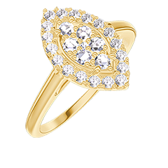 « L'ATELIER » NR. 211642Ring Geelgoud 9 karaat - Cluster van natuurlijke diamantent Markies gelijkwaardig 0.5 - Halo Diamant
