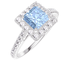 « L'ATELIER » NR. 211870Ring Witgoud 18 karaat - Blauwe topaas Prinses 0.5 Karaat - Halo Diamant - Setting Diamant 4.6