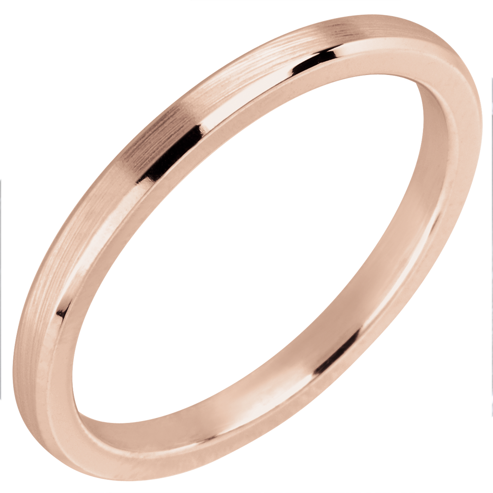 Trouwringen 2 mm Roségoud canvas 9 karaat - Koepelvormig
