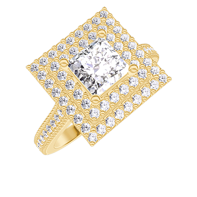 « L'ATELIER » NR. 406673Ring Geelgoud 18 karaat - Laboratorium diamant Prinses 0.5 Karaat - Halo Laboratorium diamant - Setting Laboratorium diamant