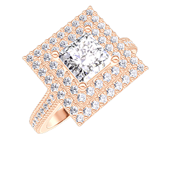 « L'ATELIER » NR. 413421Ring Roségoud 9 karaat - Laboratorium diamant Prinses 0.5 Karaat - Halo Laboratorium diamant - Setting Laboratorium diamant