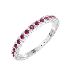 « L'ATELIER » NR. 800148Trouwringen Witgoud 9 karaat - Volledige cirkel Klauwen Robijn 0.46 Karaat