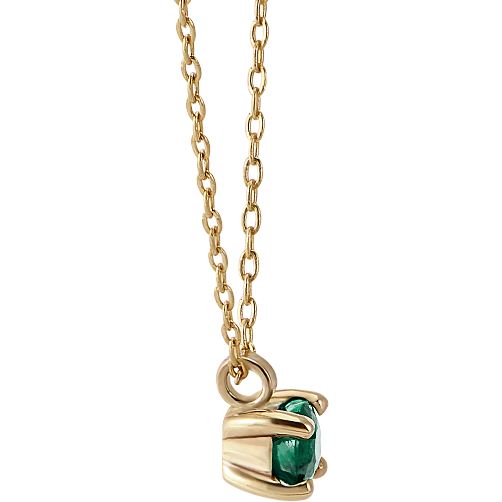 De waardering en de essentie van een smaragd sober gedragen aan een geelgouden ketting. Een klassiek, tijdloos sieraad met een vleugje kleur.
