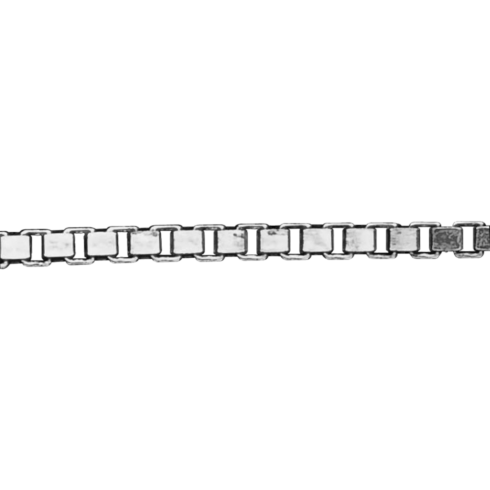 Venetiaanse ketting van kleine blokjes, biedt een unieke glitter om je nek. Goud voor de helderste kettingen. Lengte: 45 cm. Breedte: 0.85 mm. 9 karaat goud (375/1000).