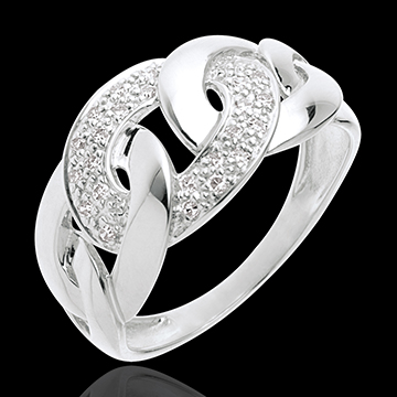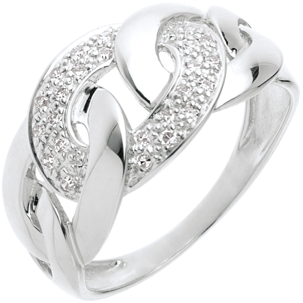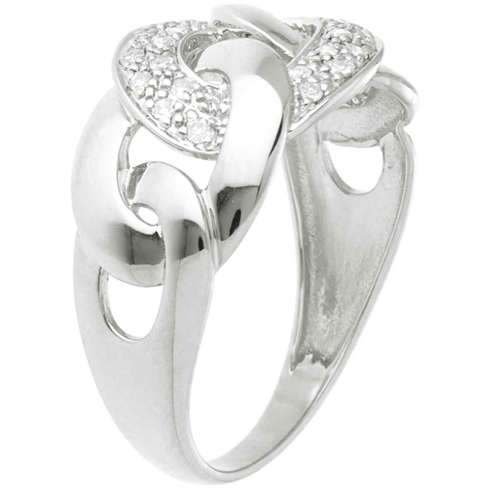 Kettingring witgoud met pavézetting - 24 Diamanten - 18 karaat goud