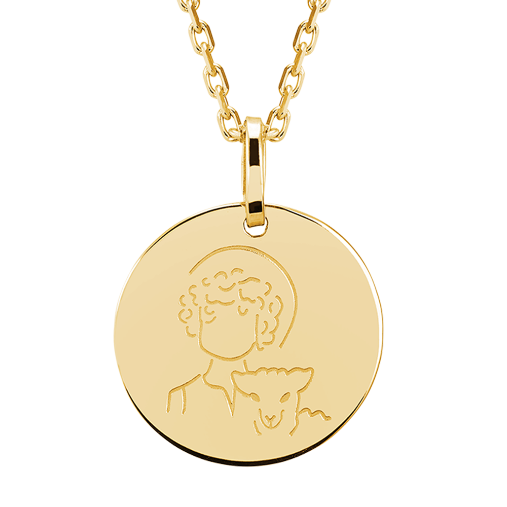 De ronde hanger met een gewicht van 1,06 g is te personaliseren met gratis gravure, ideaal als cadeau voor geboorte of doop.…