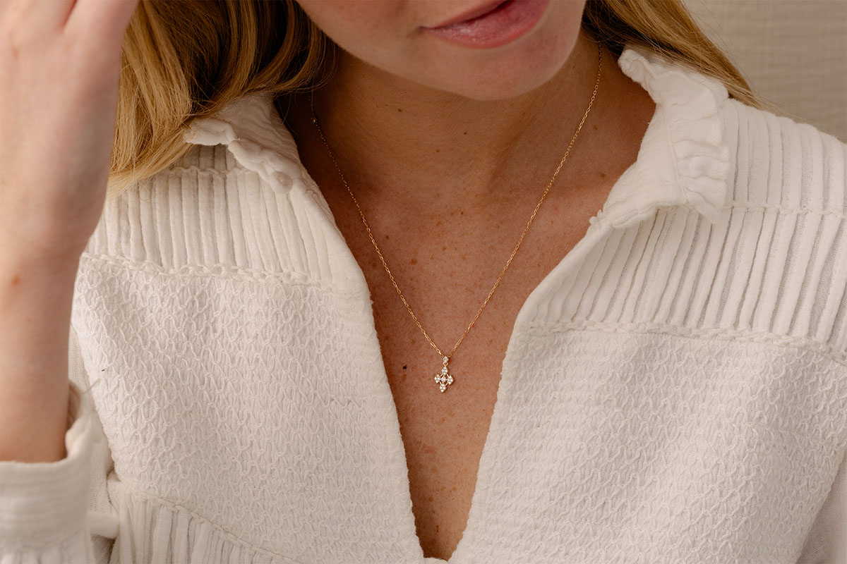 MEER INFORMATIEEen cluster is een samenstelling van kleine diamanten die samengebracht worden om het effect van een grotere steen te creëren, met vermenigvuldigde fonkeling en een uitstekende prijs-kwaliteitverhouding.