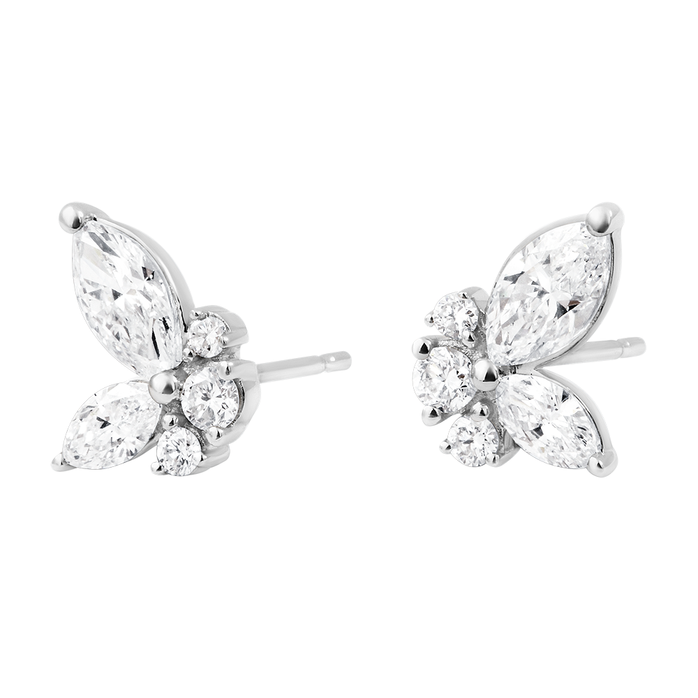 DAGDROMEN NR. 6Stud oorbellen Vlinder - Witgoud 9 karaat - Laboratorium diamant ID : 7462