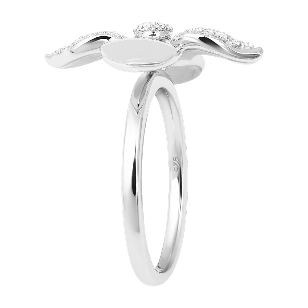 De Nectar ring valt op door zijn gewaagde ontwerp en zorgvuldig gezette synthetische diamanten. De elegante, verfijnde vormen doen denken aan de zachtheid en rijkdom van nectar en vangen een sublieme schittering op.