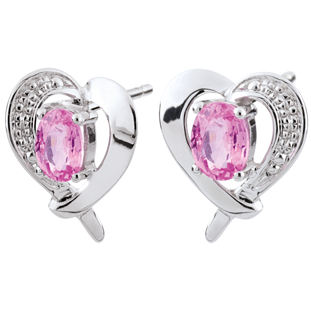 PARADIJSVOGEL NR. 12Stud oorbellen Hart - Witgoud 9 karaat - Rosé saffier ID : 2339 5 (8)