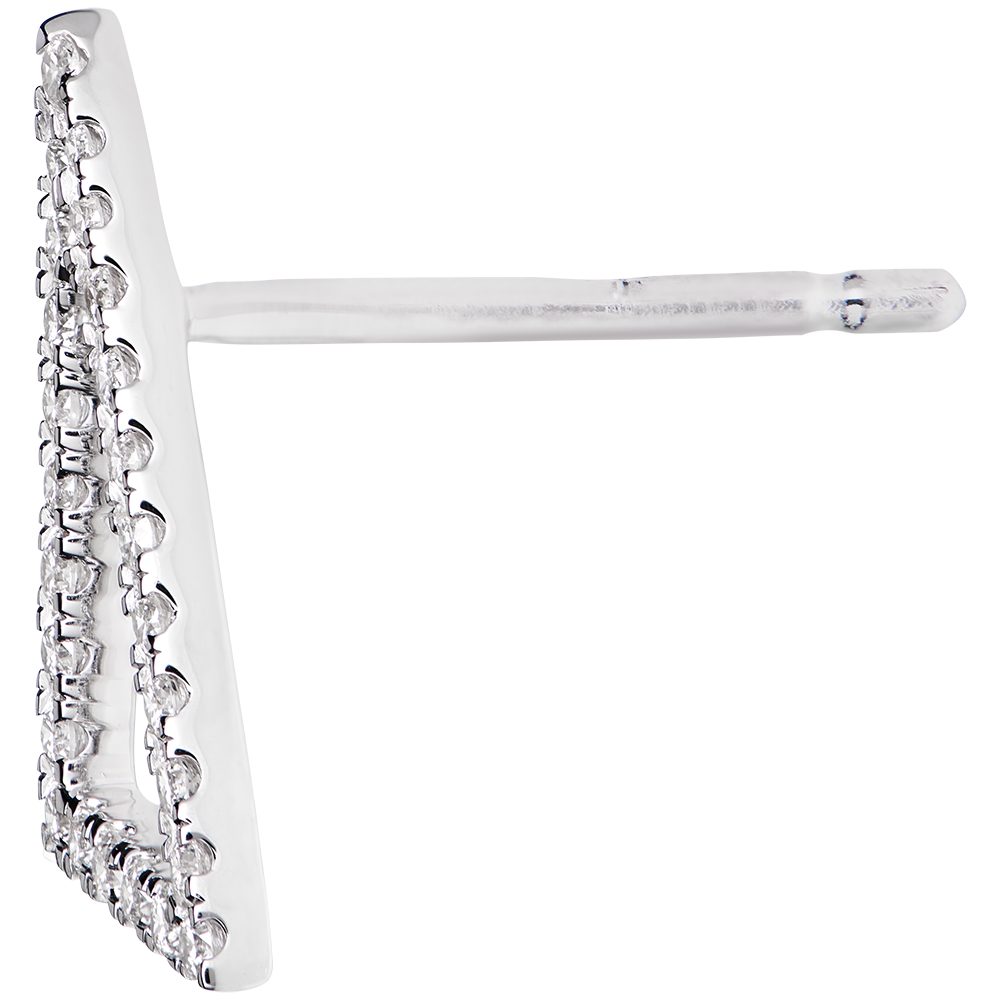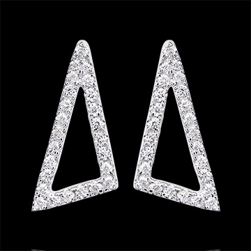 Een paar evenwichtige, met diamanten bezette oorbellen met een grafisch model die tegen de oorlel of hangend gedragen kunnen worden