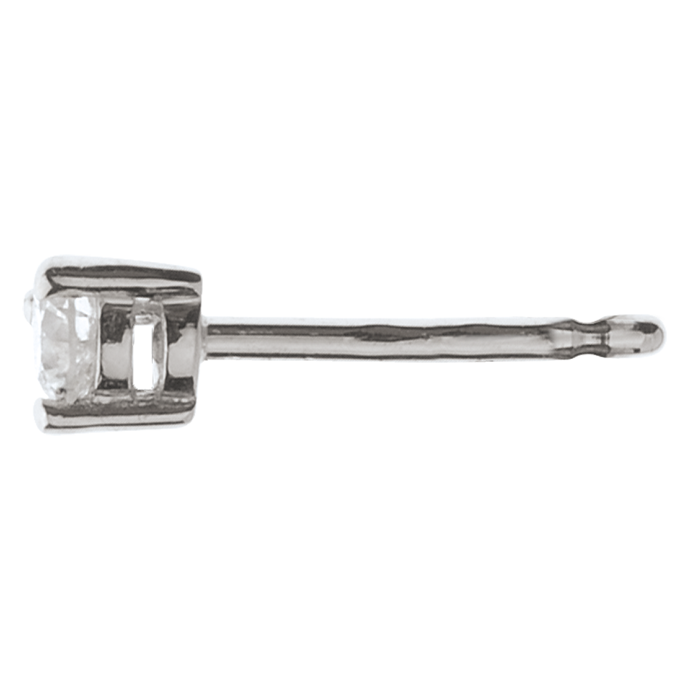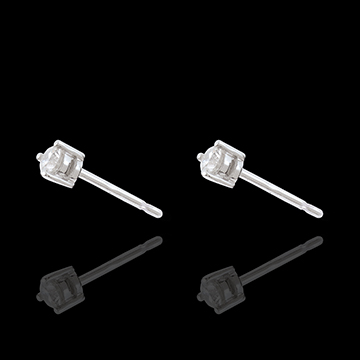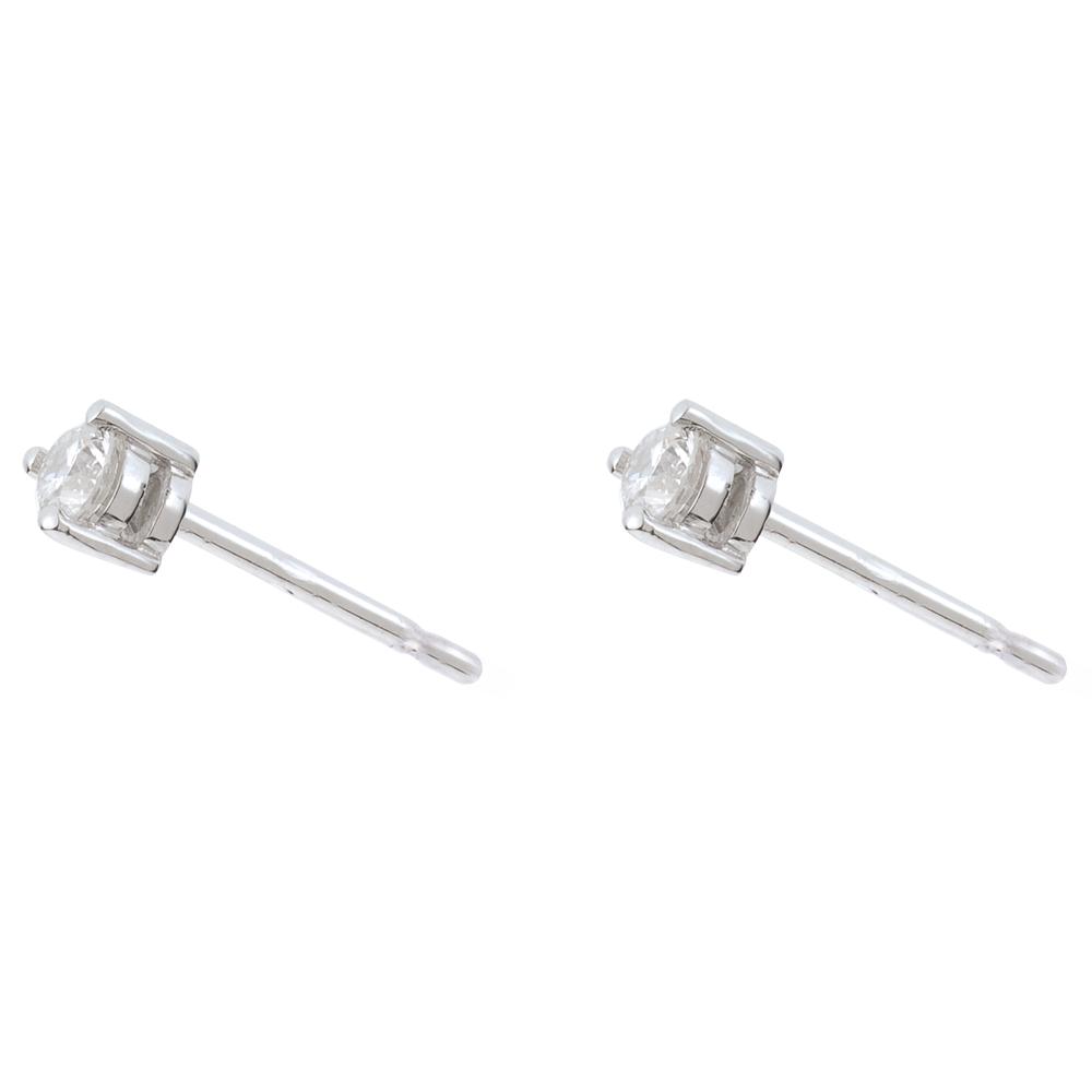 Een diamanten solitaire gezet op witgoud in elk oor, een klassieke en tijdloze versiering.