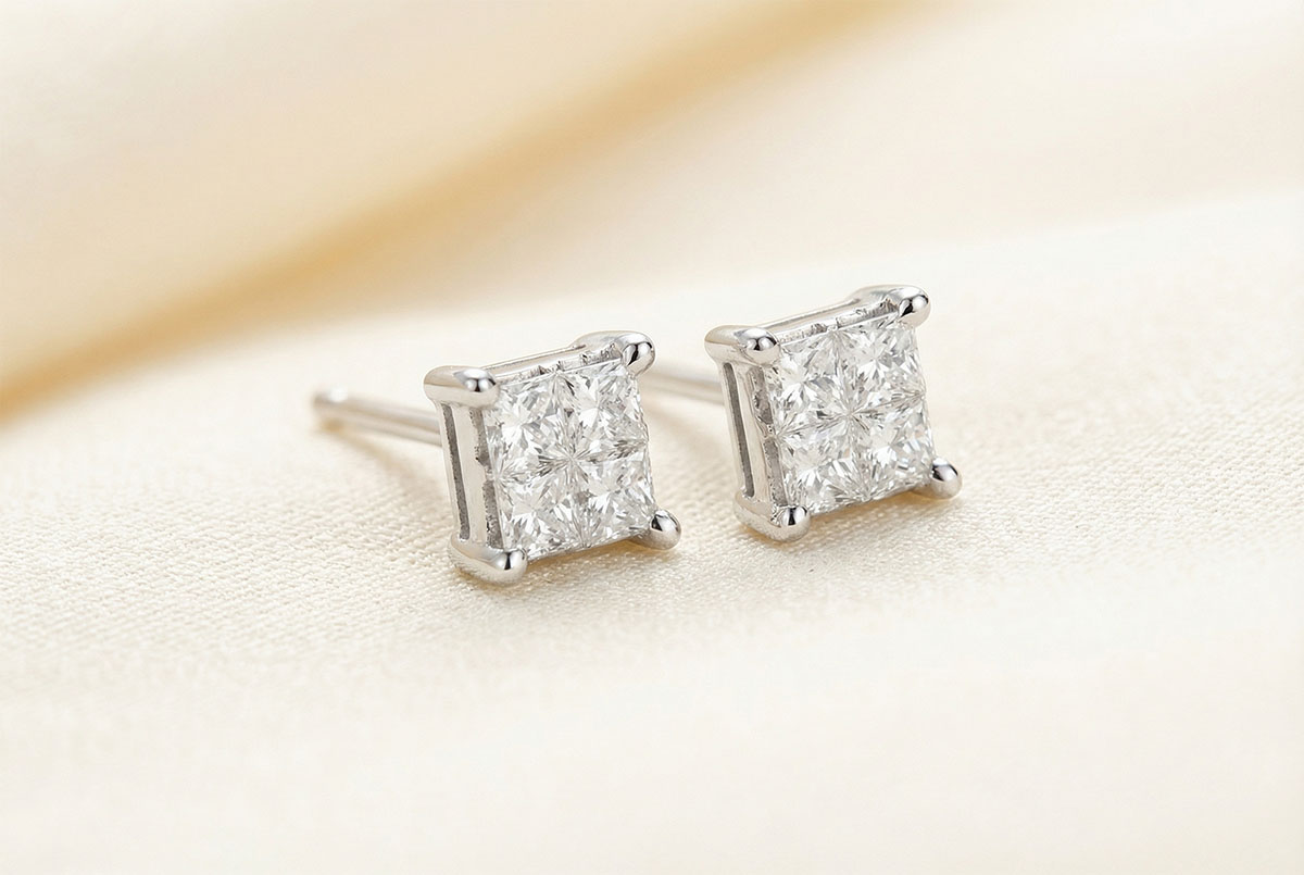 Balans en evenwicht van een diamant geruite pavézetting, een paar delicate en tijdloze chips.