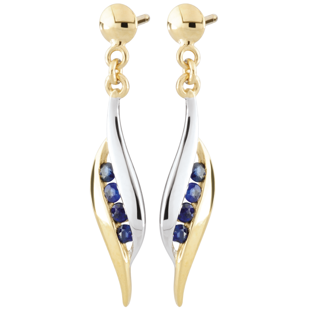 PARADIJSVOGEL NR. 23Oorbellen - Witgoud en Geelgoud 9 karaat - Blauwe saffier ID : 2432 5