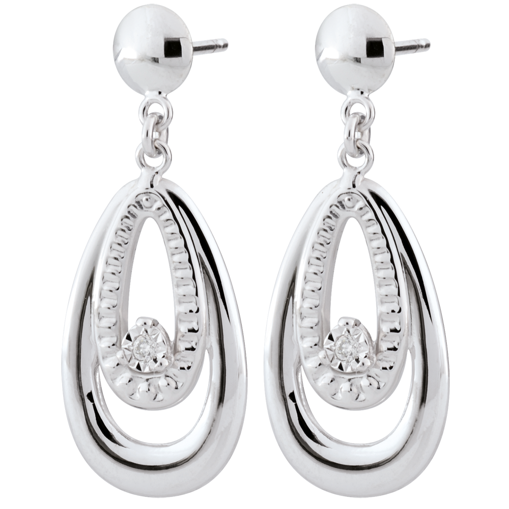 Elegante oorbellen in goud geweven met een diamanten hart.