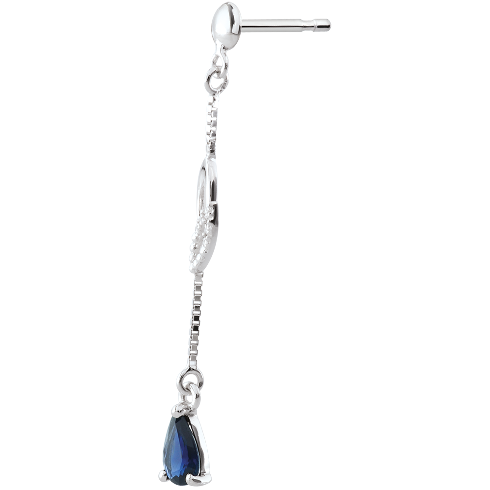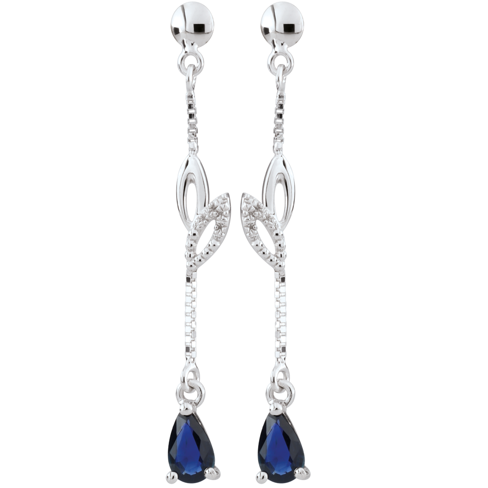 Een paar sierlijke oorbellen in witgoud met Saffieren.