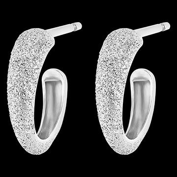 Een paar creolen in getextueerd witgoud - diamanteffect voor een resoluut moderne look.