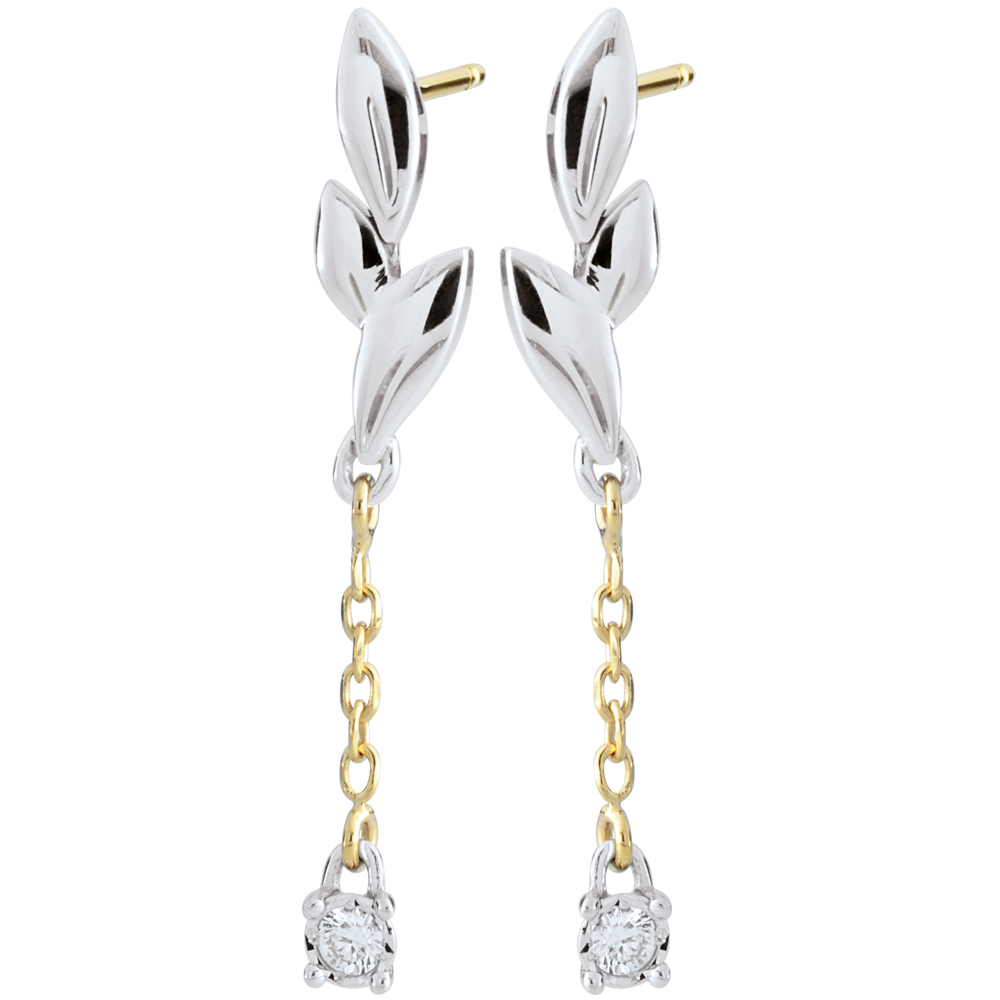 Een delicaat gebladerte verschrikt de diamant die wordt opgeschort.