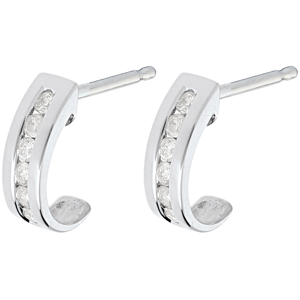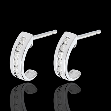 De perfecte boog van een rail diamanten gemarkeerd door een halve maan in witgoud.
