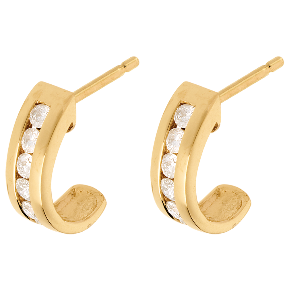 De perfecte boog van een rail diamanten gemarkeerd door een halve maan in geelgoud.