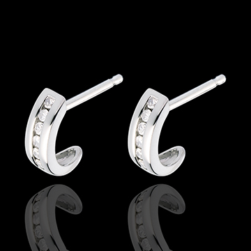 De perfecte boog van een rail diamanten gemarkeerd door een halve maan in witgoud.