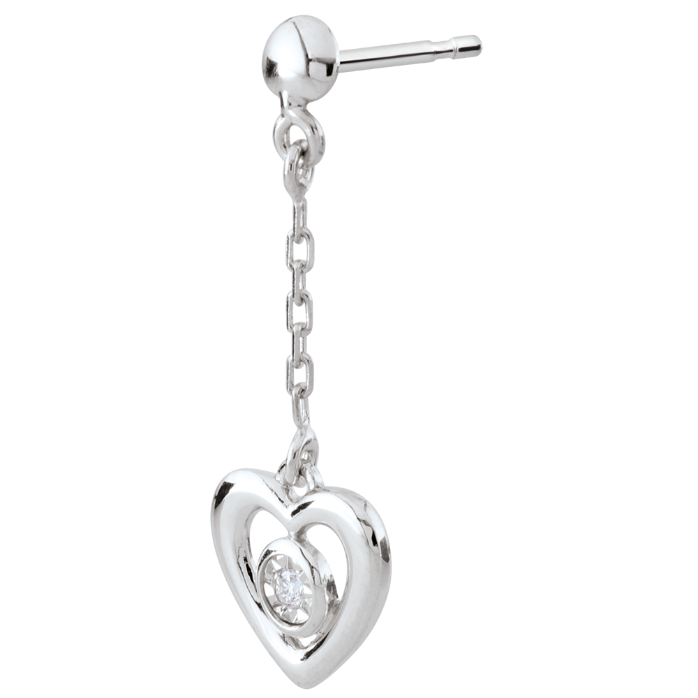 Een mooi hartje, drager van een diamant hart hangt sierlijk aan elk van deze oorbellen.