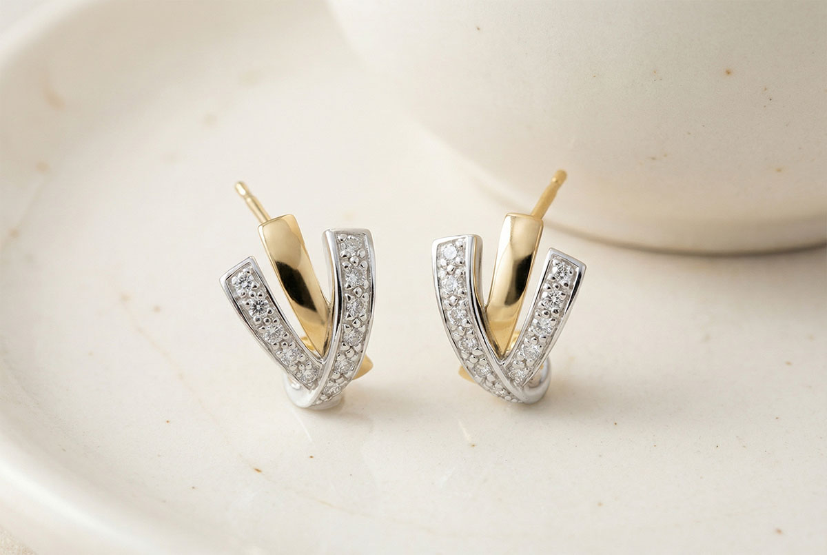 INFINITY NR. 6Stud oorbellen - Witgoud en Geelgoud 18 karaat - Diamant ID : 1288