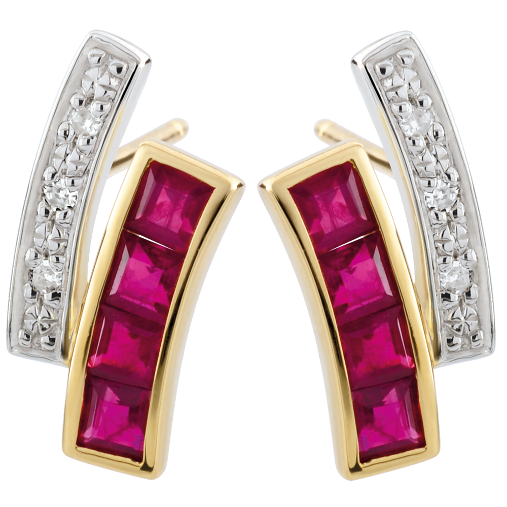 Oorbellen Kiona - robijn en Diamant - 9 karaat witgoud en geelgoud