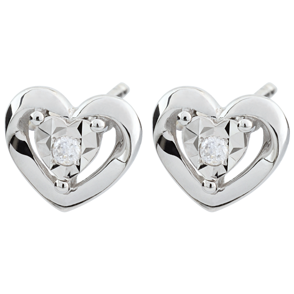 Oorbellen kleine hartjes - 9 karaat witgoud