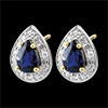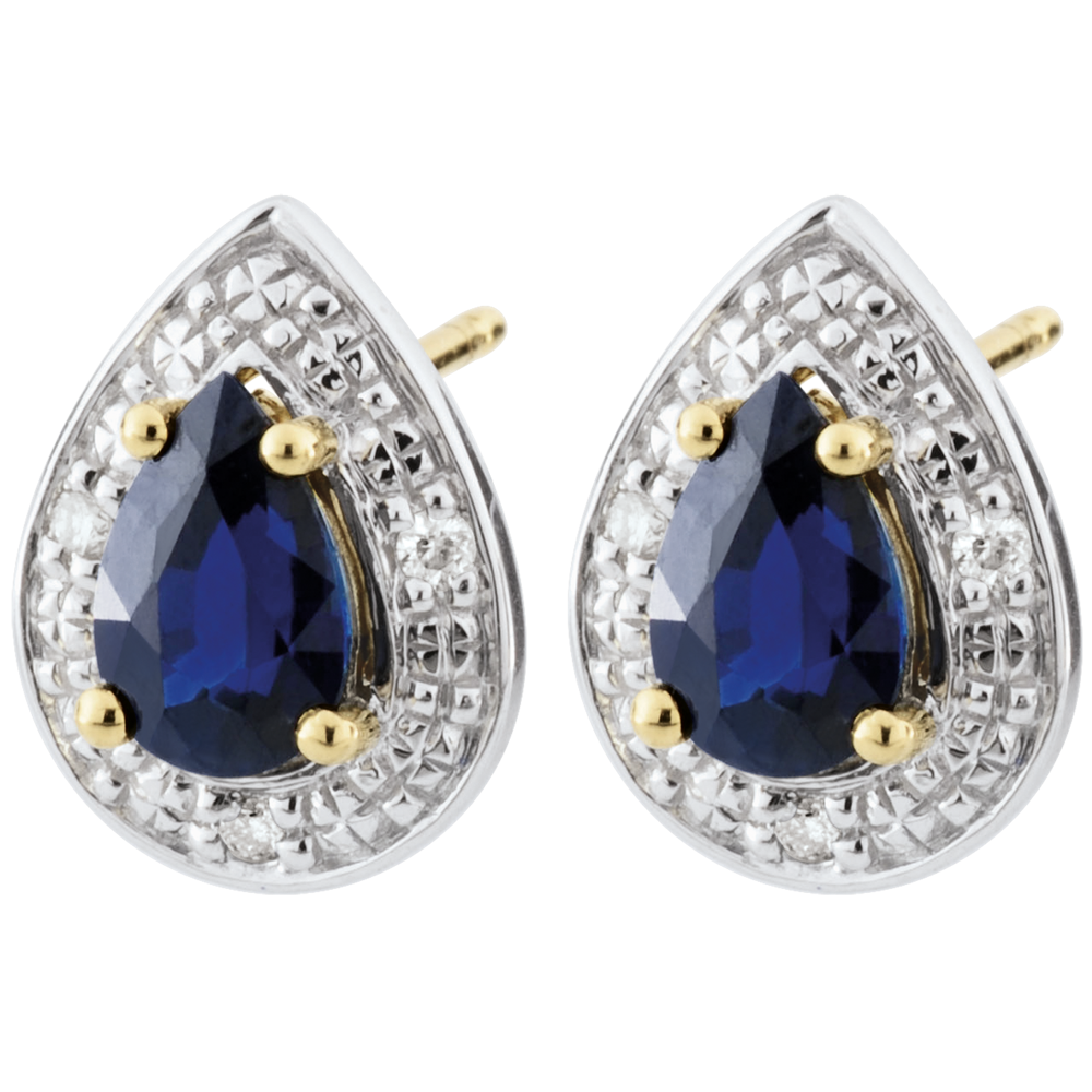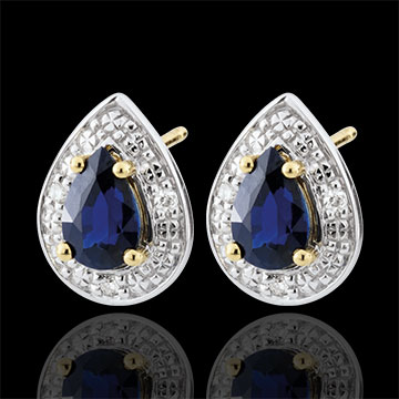 Twee Saffieren druppels gekristalliseerd met diamanten en goud. Sublieme klassieke vrouwelijkheid.