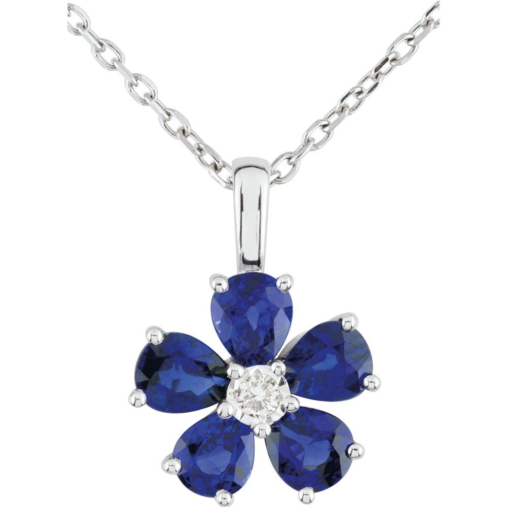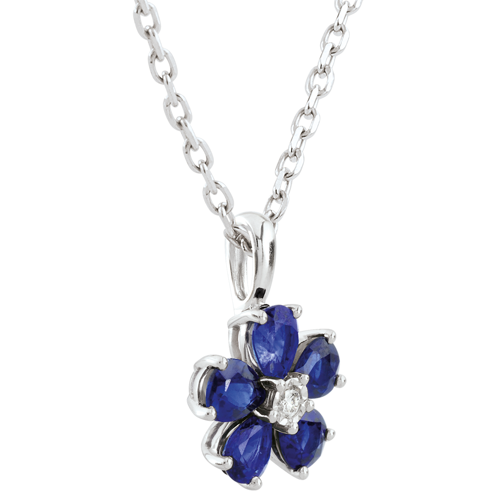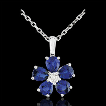 Halsketting Maria Flora - Saffier - 9 karaat witgoud