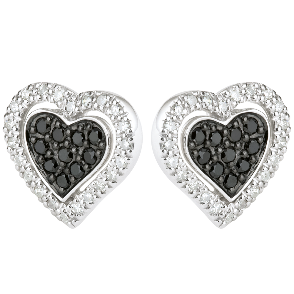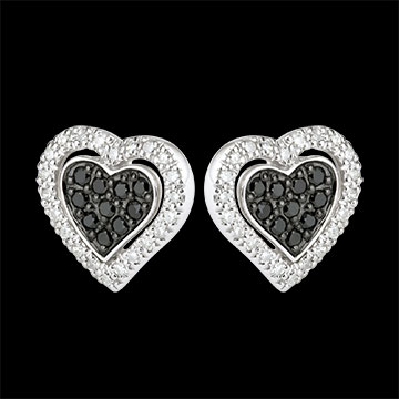 Elegante en grote oorbellen, deze harten met zwarte en witte diamanten zullen niet onopgemerkt blijven.