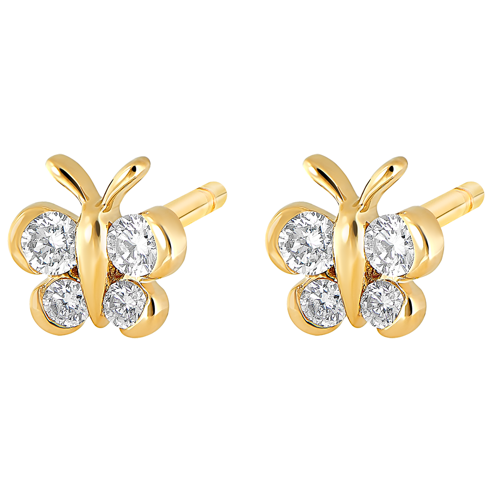 KLEINE SCHATTEN NR. 1Stud oorbellen Vlinder - Geelgoud 18 karaat - Diamant ID : 4409