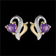 Romantische gouden bogen omarmen twee hartvormige amethist.