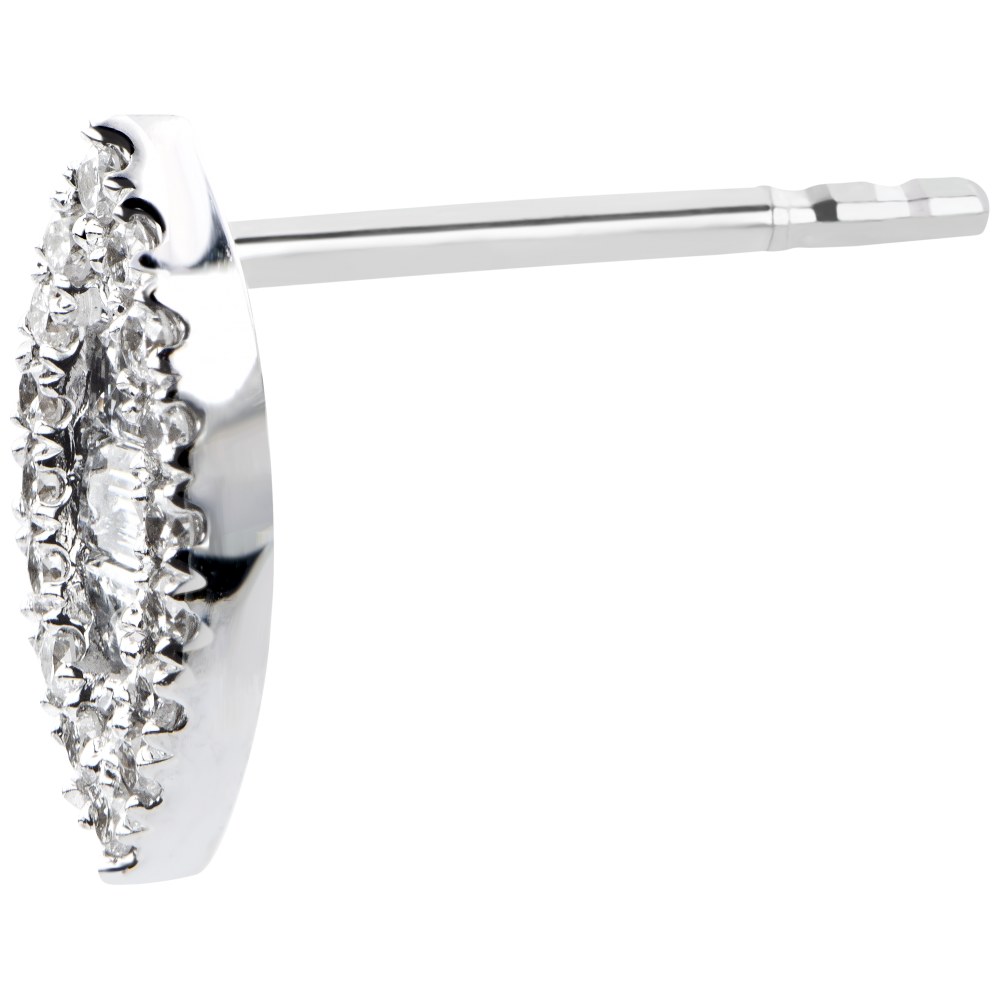 Een trilogie van staafdiamantjes, omhuld door een amandelvormige pavézetting voor een paar fijne, vrouwelijke oorbellen, waarvan de vormen geïnspireerd zijn op de oosterse verhalen.