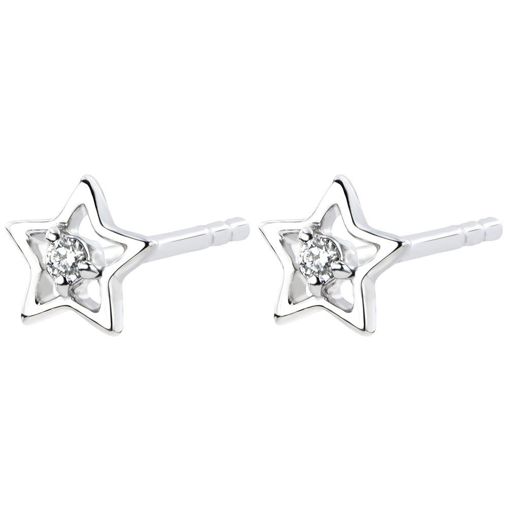 Het iconisch stermodel van witgoud, bezet met een diamant, werd herbedacht tot discrete, unieke oorbellen.