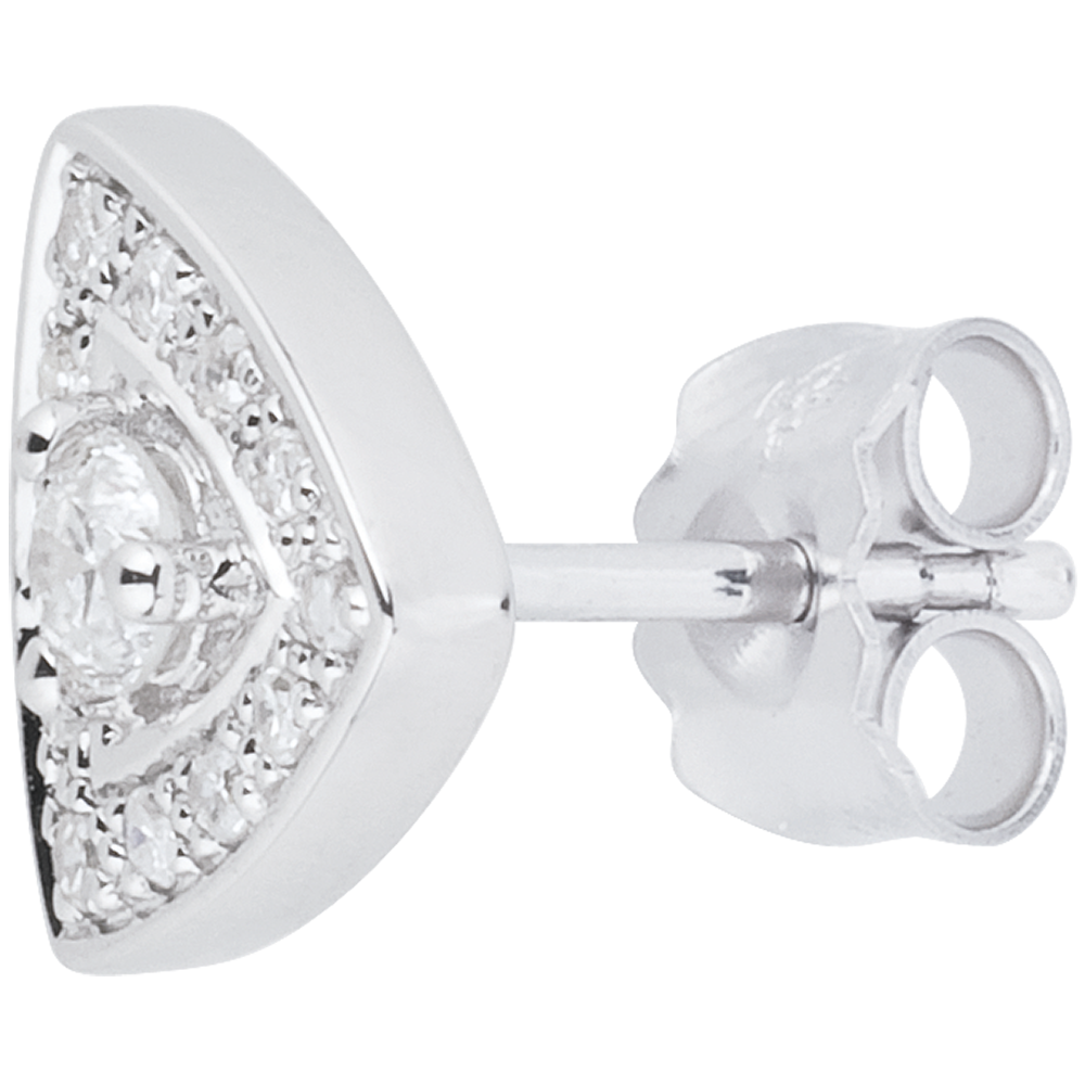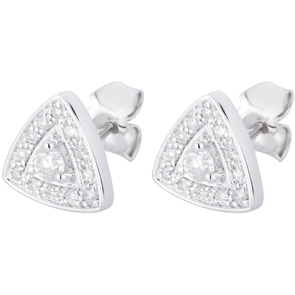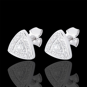 Driehoekige oorbellen in witgoud met diamanten hebben een zulke elegantie om de vrouw de versieren zoals een vedette uit de cinemawereld.
