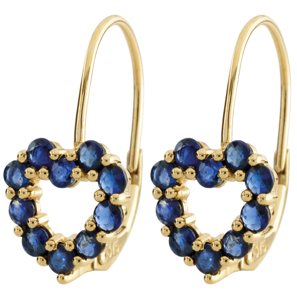 Twee harten gemaakt van waardevolle Saffieren en geelgoud zijn de perfecte bondgenoten van uw vrouwelijkheid.