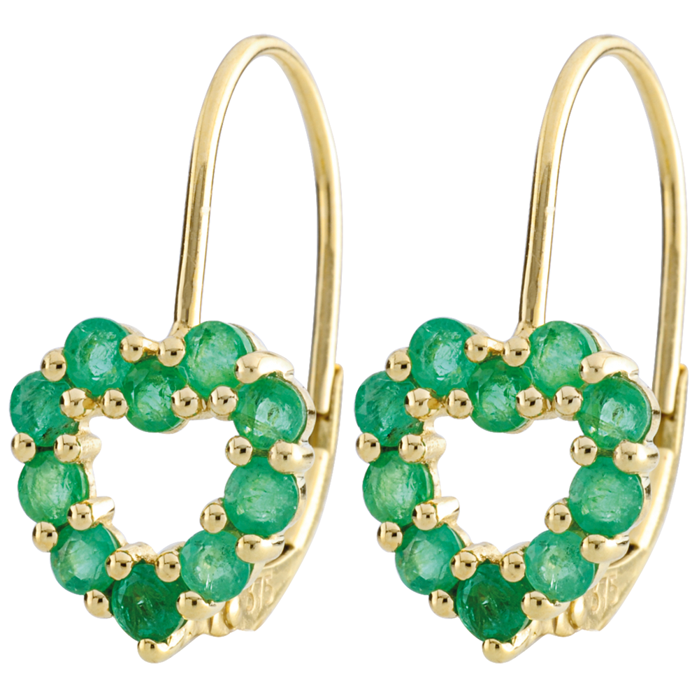 Twee harten gemaakt van waardevolle smaragden en geelgoud zijn de perfecte bondgenoten van uw vrouwelijkheid.